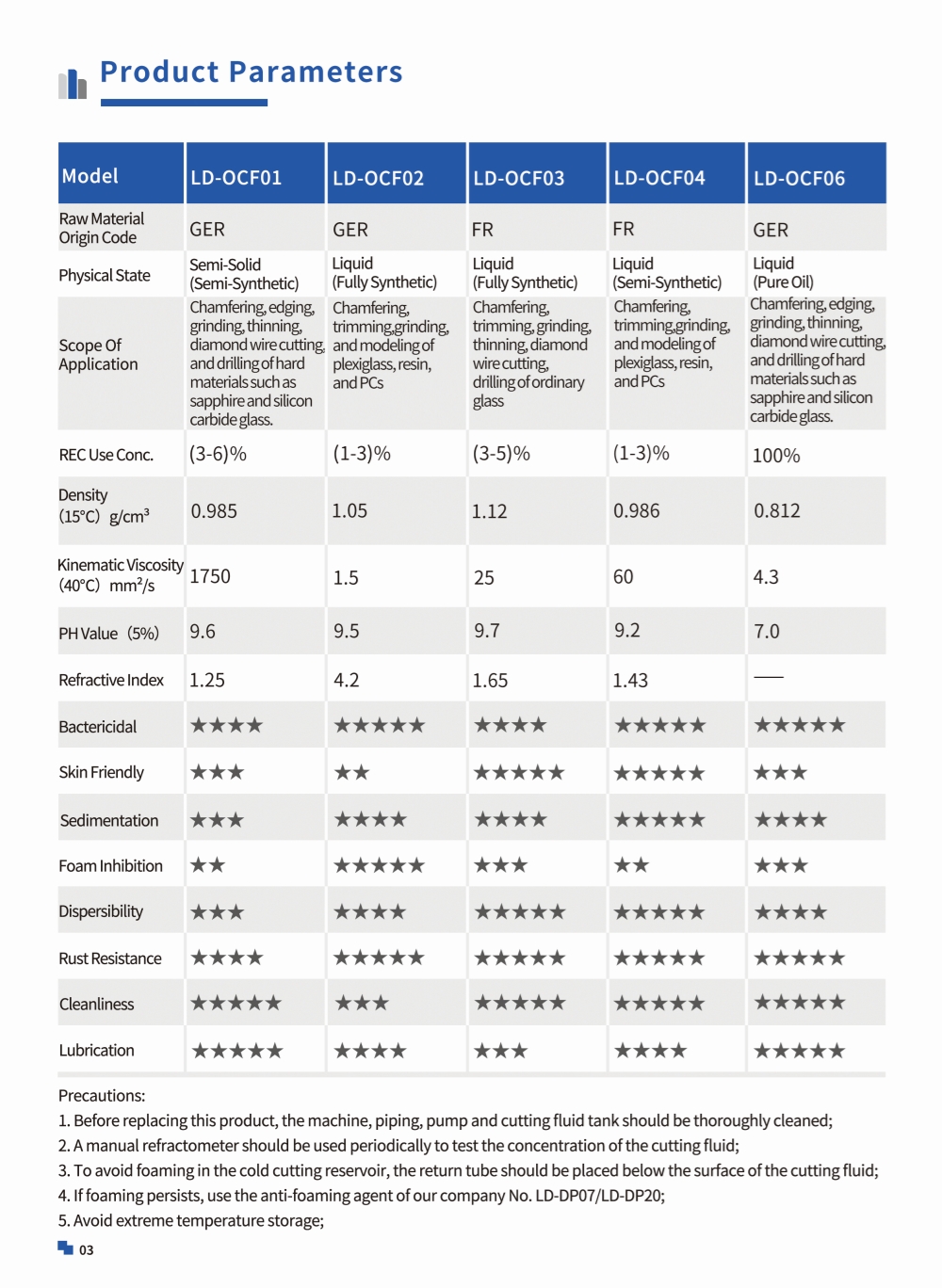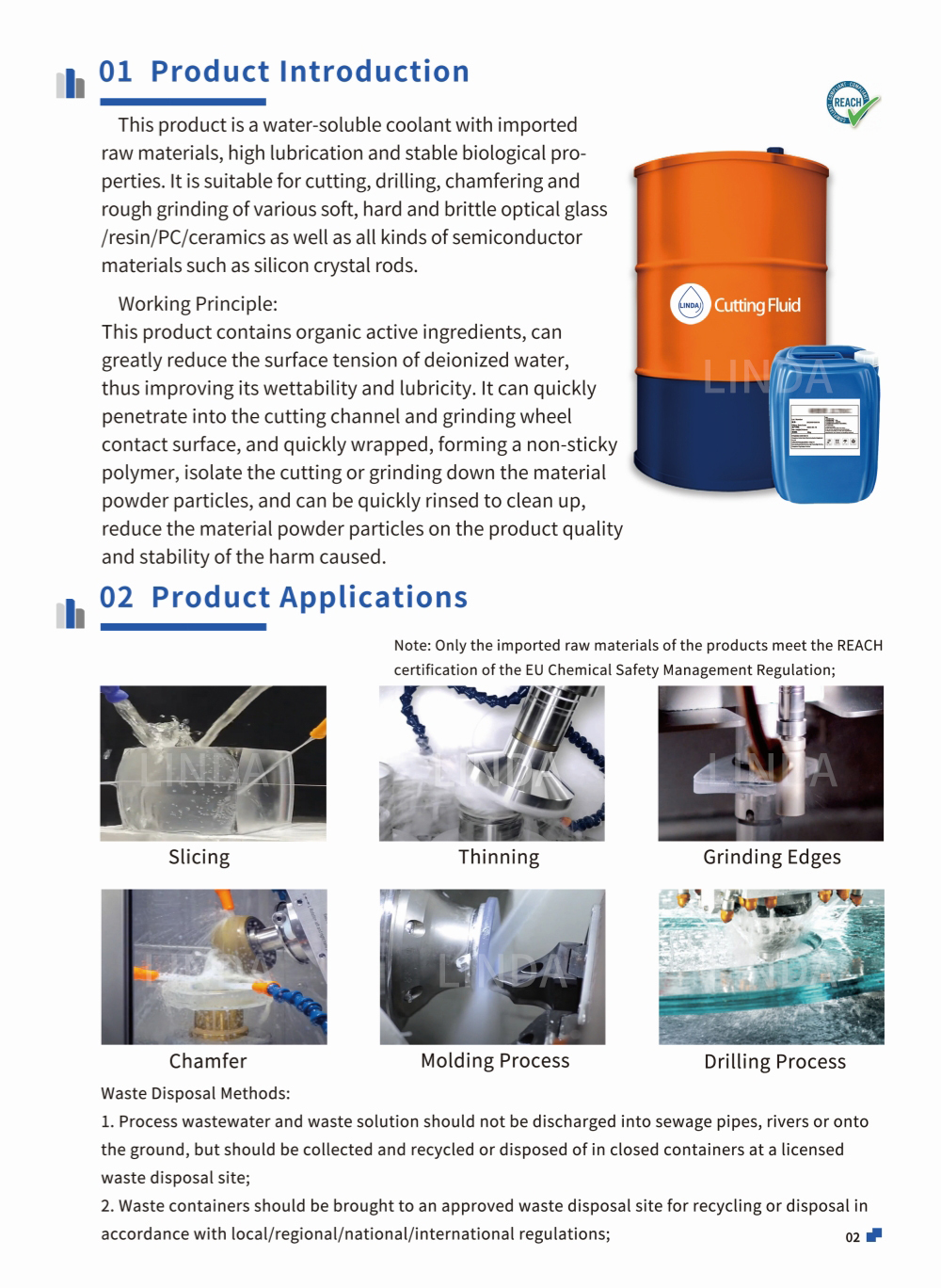 It is suitable for the cooling and lubrication of fine grinding, coarse grinding and cutting of various soft, hard and brittle optical glass/resin/PC.