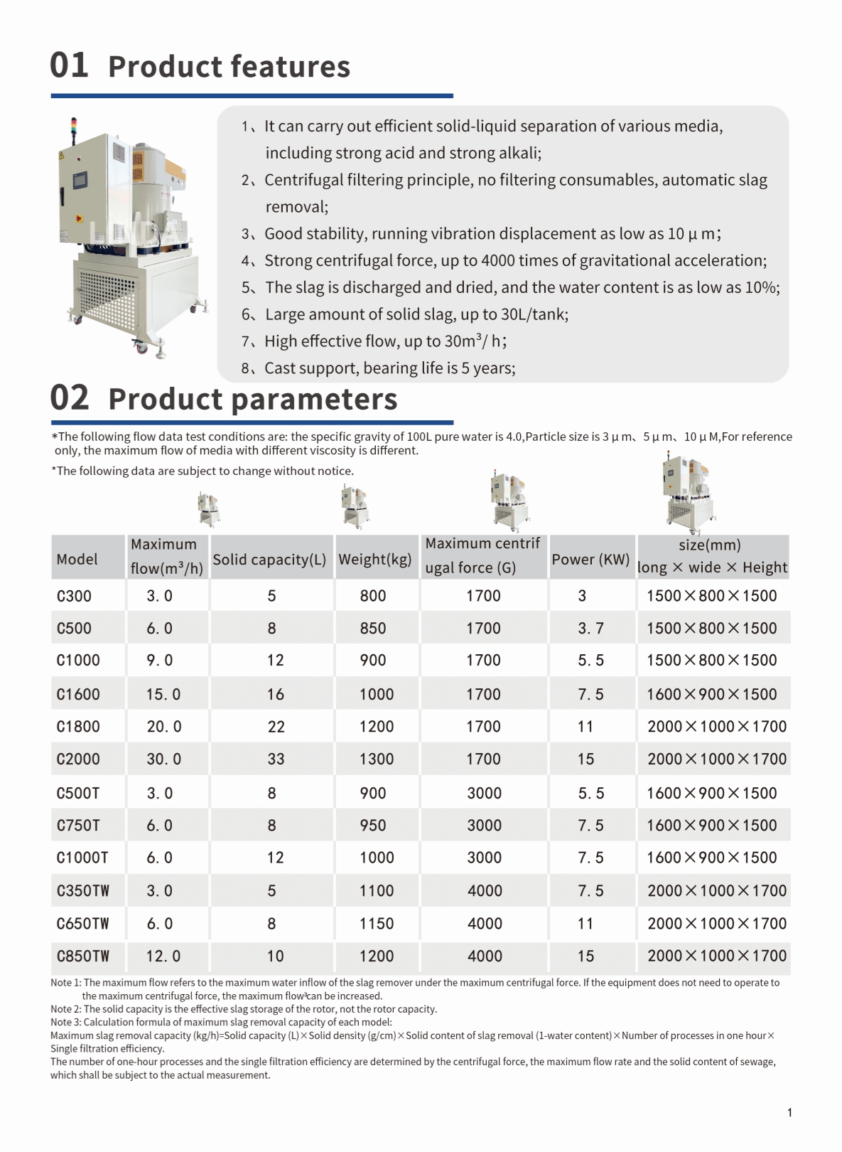 Centrifugal force: 1700G-4000G (optional), Drum volume: 5L-30L (optional),Flow rate: 3m³/h-30m³/h (optional),Material: carbon steel, stainless steel, PTFE (optional);