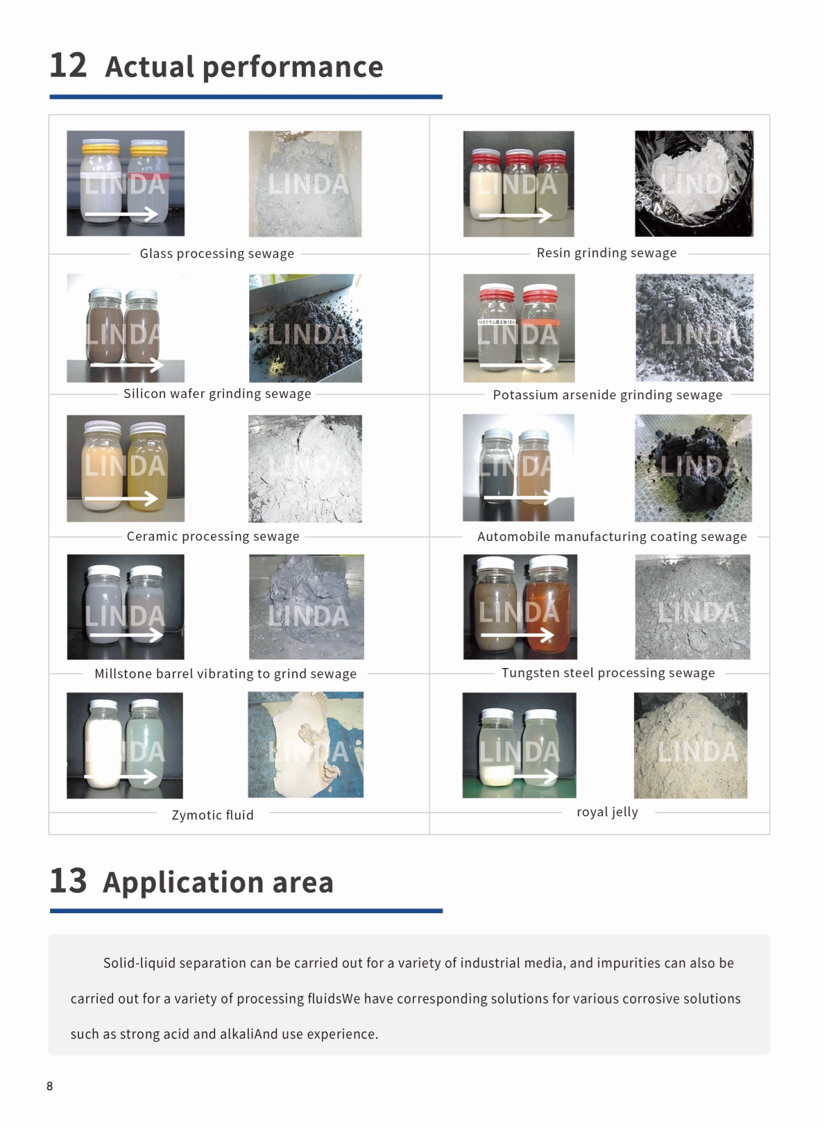It can separate the solid waste residue in the industrial production and processing sewage/waste oil from the sewage/waste oil in a very dry way, whether it is strong acid, strong alkali, neutral sewage/waste oil;